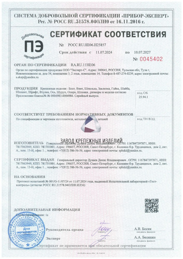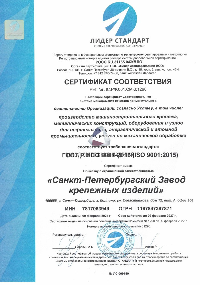 Санкт-Петербургский Завод крепежных изделий предлагает полные аналоги продукции европейских производителей крепежа и гидравлики.